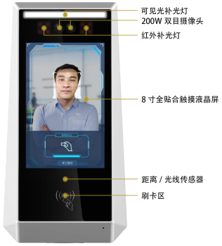 200W宽动态双目摄像头,专用高性能图像处理芯片,有效捕捉人脸细节,光线适应性强。