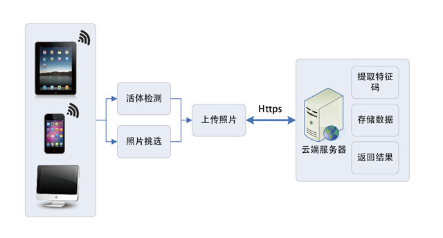 1. 活体检测:活体检测需要处理大量图片,为了减轻网络压力和服务器计算负载,活体检测放在客户端完成。
